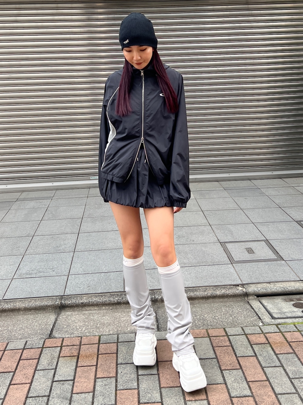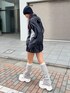 【トップス】 168cmでお尻くらい丈感がありました! 逆開ファスナーなので、下開けたらスカートとか見えて可愛いです❤️トップスでも可愛いし キャミソール仕込めば、アウターにもなるのでオススメ✨ 【ボトムス】 トップスとセットアップとして着られるスカートです!バルーンみたいなシルエットなので トレンド感満載✨✨インナーパンツ付いてるので安心して着られます❤️ 【小物】 レッグフォーマー 付けるだけでコーデの幅が広がります!さりげないマークもポイント!ふくらはぎのところにアジャスターあるので調節できます✨ 【シューズ】 厚底スポサン!❤️ 去年も大人気だった、サンダル とっても軽くて履きやすい! 普段25.5cm-26cmでLサイズで履けます!