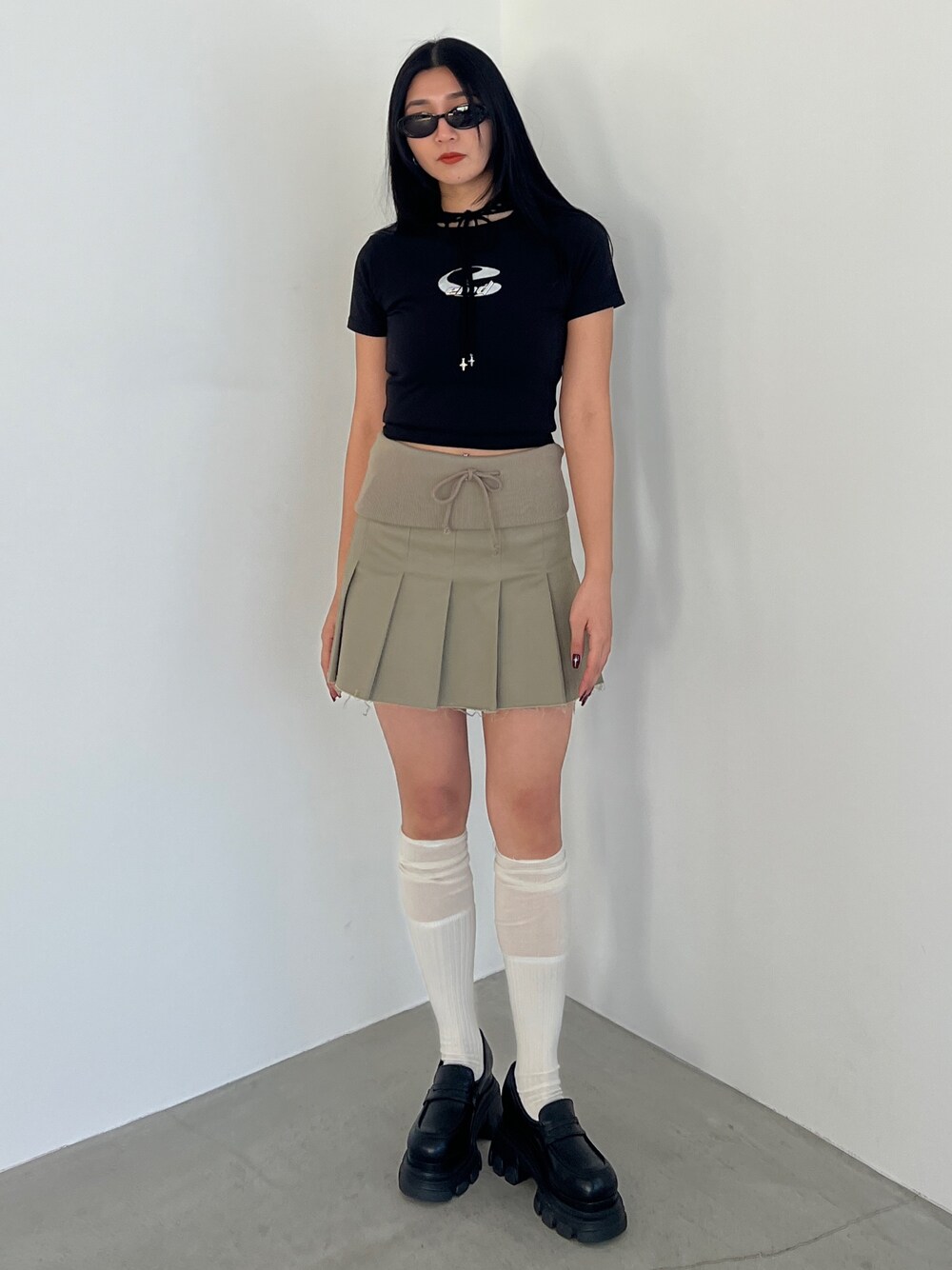 永田真弓(EMODA)のスカート「リブワイドプリーツスカート」を使ったコーディネート