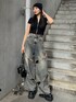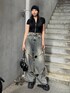 永田真弓(EMODA)のデニムパンツ「カットアウトルーズジーンズ」を使ったコーディネート