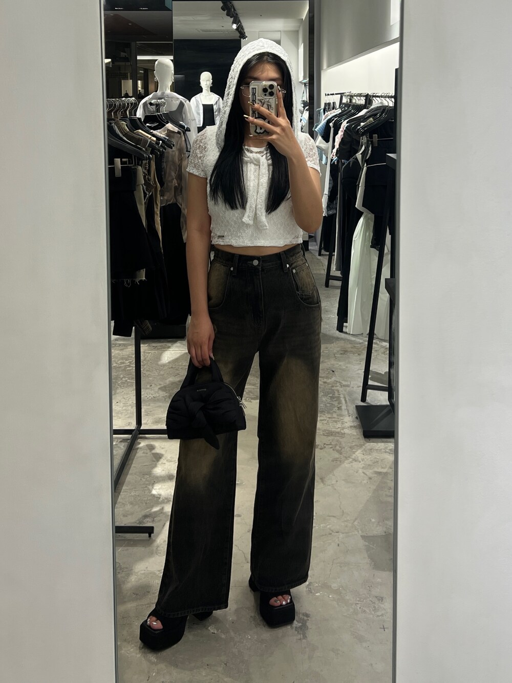 【トップス】 トレンドのレーストップス! フードが付いてます! ありなしでコーデ考えれます! ピタッとしすぎてないので骨ストの方でも 着やすいですよ(^з^)-☆ 【デニム】 8割足になるワイドデニム‼︎ ウエストヒップがルーズすぎないのでワイドでも美脚効果🔥 サイドにリボンのデザインがあるのがポイント◎♡ ビンテージカラーがとてもお気に入り 脚長効果、こなれ感が出ます♡ (168cmでSサイズ着用) 【シューズ】 店頭で毎回人気の厚底サンダルです! ヒールは12cmです!♡ なのに高低差ないので歩きやすいです(^ ^) (168cm Lサイズ)