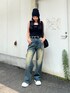 永田真弓(EMODA)のTシャツ/カットソー「ストーンロゴニットタンクトップ」を使ったコーディネート