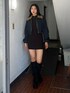 【アウター】 ショート丈のボアのブルゾンです!♡ 首元のボアの色とデニム生地が可愛い! 168cmでくびれのところに丈感がきます! 中綿入ってるので暖かいです✨ 【ワンピース】 ジップワンピースです! 毎年人気のアイテムが帰って来ました^_^ 今回は肩のところが空いてるデザインです! ヘルシーな肌見せなので可愛いです! 168cmで太ももの長さです🦵 【シューズ】 膝下丈のロングブーツ! 今年は、ルーズソックスみたいなくしゅくしゅになってるデザインです! 傾斜もないので、歩きやすいし、軽いです! (普段25.5cm-26cm L着用)