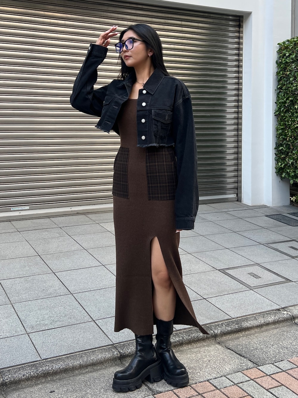 【ブルゾン】 デニム生地のショート丈のブルゾンです!☘️ 肩にゆとりがあるので骨スト細見えます! 着ると168cmでおへそより上の丈感で着れます!なので、ボトムスはハイウェストで合わせると可愛いですよ∩^ω^∩ 【ワンピース】 ウエストにゴムがあるので、ウエストマークできます!♡リブの生地なので楽です! 骨格ストレートさんはデコルテ出した方が スタイル綺麗に見えるので、優勝ワンピです🥇 今回太ももあたりにチェックの生地が可愛いです! 【シューズ】 普段26cmでLサイズ着用! ふくらはぎまでの長さのため、 ハーフパンツ、ミニスカート、ロングワンピース(スリットあり)などと合わせると可愛いです! とても歩きやすいのに、トレンド感あるので 可愛いです!◎