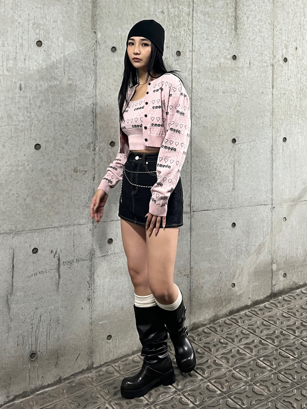【トップス】 2ピースのトップスです! ロゴが大胆に入ってて可愛いです!♡ 【スカート】 インパンが付いてます! タイトスカートなのでスタイル綺麗に見えます👀 【シューズ】 Y2Kぽいブーツです!♡ ビンテージカラーが可愛かったです! 普段25.5cm-26cmでLサイズで履けました!