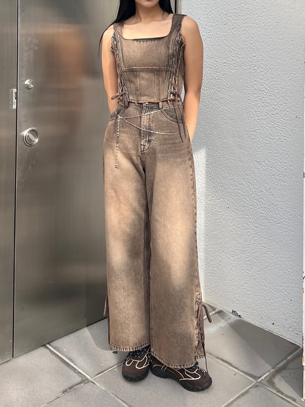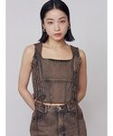 永田真弓(EMODA)のタンクトップ「サイドレースアップデニムビスチェ」を使ったコーディネート
