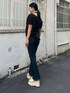 永田真弓(EMODA)のTシャツ/カットソー「ルーズネックストリングTシャツ」を使ったコーディネート