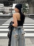 永田真弓(EMODA)のタンクトップ「ホルターネックリブタンクトップ」を使ったコーディネート