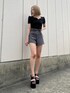 与口令央奈(EMODA)のTシャツ/カットソー「フロントボタンリョートリブトップ」を使ったコーディネート