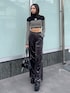 与口令央奈(EMODA)のニット/セーター「ハイネッククロップロゴニット」を使ったコーディネート