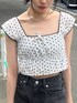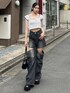 [トップス]トレンドのドットデザインショート丈トップス🩵ベロア素材で秋口まだ着られる✨スクエアネックの首元が広めに空いているので首周りがすっきりして見えます👀 [デニム]身長160cmでSサイズ着用🍒大きめのカットデザインが隙間から見える脚を美脚に見せてくれる👀💗オーバーサイズでゆったりなのに腰回りはしまっていて細見えデザイン🍒ハートのチャームは取り外し🉑 [サンダル]厚底11.5cm❤️カーブヒールデザインでキレイめな印象に✨脱ぎ履きしやすく生地感柔らかめなので靴づれしにくい◎