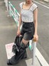 与口令央奈(EMODA)のタンクトップ「ベロアギャザーリボンタンクトップ」を使ったコーディネート