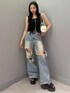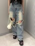 与口令央奈(EMODA)のデニムパンツ「ボールドリップドルーズジーンズ」を使ったコーディネート