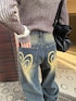 [トップス]シャギー素材の襟付きダブルジップトップス❤️タイトめなシルエットで細見え効果抜群💖デザイン性があるのでシンプルなコーデとの相性も🙆♀️ [デニム]後ろポケットにハートペイントのデザインが可愛いワイドデニムウエスト、腰回りはスッキリ見えるのに裾はゆったり履けるのがシルエット完璧✨ポケットの位置も高めで脚長効果抜群🩵身長160cmでSサイズ着用 [ブーツ]モコモコデザインが可愛いボア付きカバーブーツ🩷厚底8cmで高低差もなくさりげなく盛れるイチオシブーツ✨ボアのボリュームがあるので細見え効果抜群❤️