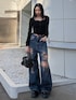 [トップス]春先まで大活躍のレーストップス🎀ギャザーが細かく入っていて細見えしてくれるのがポイント🖤ハートネックで鎖骨もしっかり見えるので骨格関係なく盛れる✨ [デニム]クラッシュデザインがポイントのルーズワイドジーンズ❤️🔥身長161cm、Sサイズ着用で厚底合わせでゆるっとな丈感✨ウエストは閉まっているのでスタイルアップ効果抜群⤴️ [ローファー]厚底8.5cmのフラットローファー❤️こんなにも厚底なのにほんとに軽量で歩きやすく疲れない✨24.5cmでLサイズ着用🍒