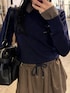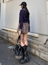 [トップス]セットアップでも着られるシャツデザインニット🩵首元と袖口のシャツは取り外し可能でシンプルニットとしても使いやすい着回し万能アイテム✨ [パンツ]セットアップでも着られるスカート風インナー付きショートパンツ💭レイヤード風のデザインがトレンド🍒 [ブーツ]厚底5cmのカジュアルロングブーツ✨24.5cmでLサイズ着用🍒ベルトデザインがワンポイントで可愛く、シンプルなコーデにもアクセントに💜長いソックス合わせはこなれ感がプラスで👍
