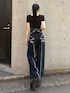 与口令央奈(EMODA)のデニムパンツ「【SNSで話題!】バックリボンルーズジーンズ」を使ったコーディネート