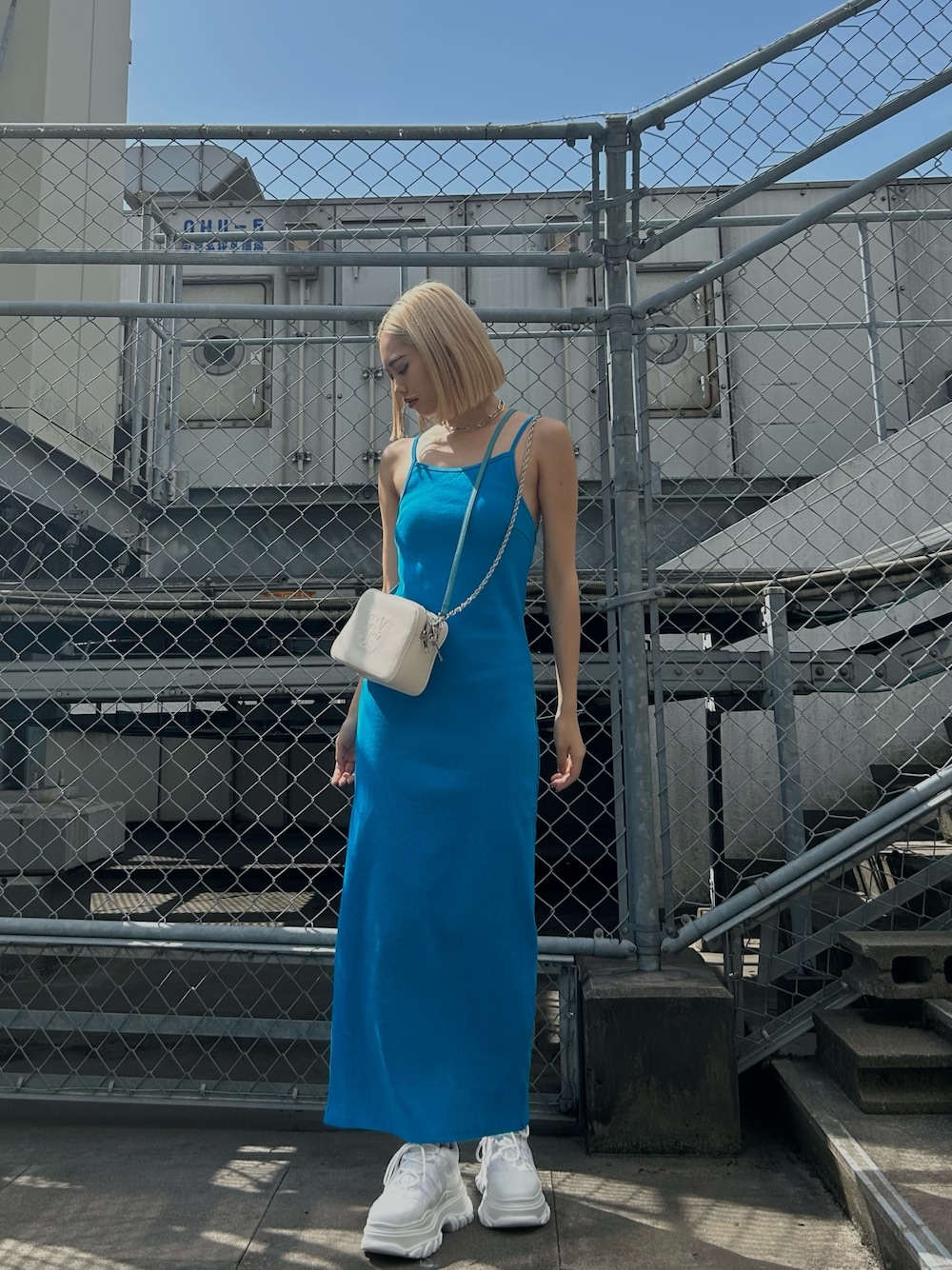 【one-piece】 パッド付きなので1枚で着用していただけます🫶🏼体のラインをきれいにみせてくれます✨紐で長さの調節もできます! 【bag】 バイカラーのショルダーが可愛いバッグです🩵マチがしっかりあるので荷物もたくさん入ります🙆🏼♀️ 【shoes】 24cmでLサイズを着用しています! シンプルなスニーカーなのでいろんなコーデに合わせやすいです👟