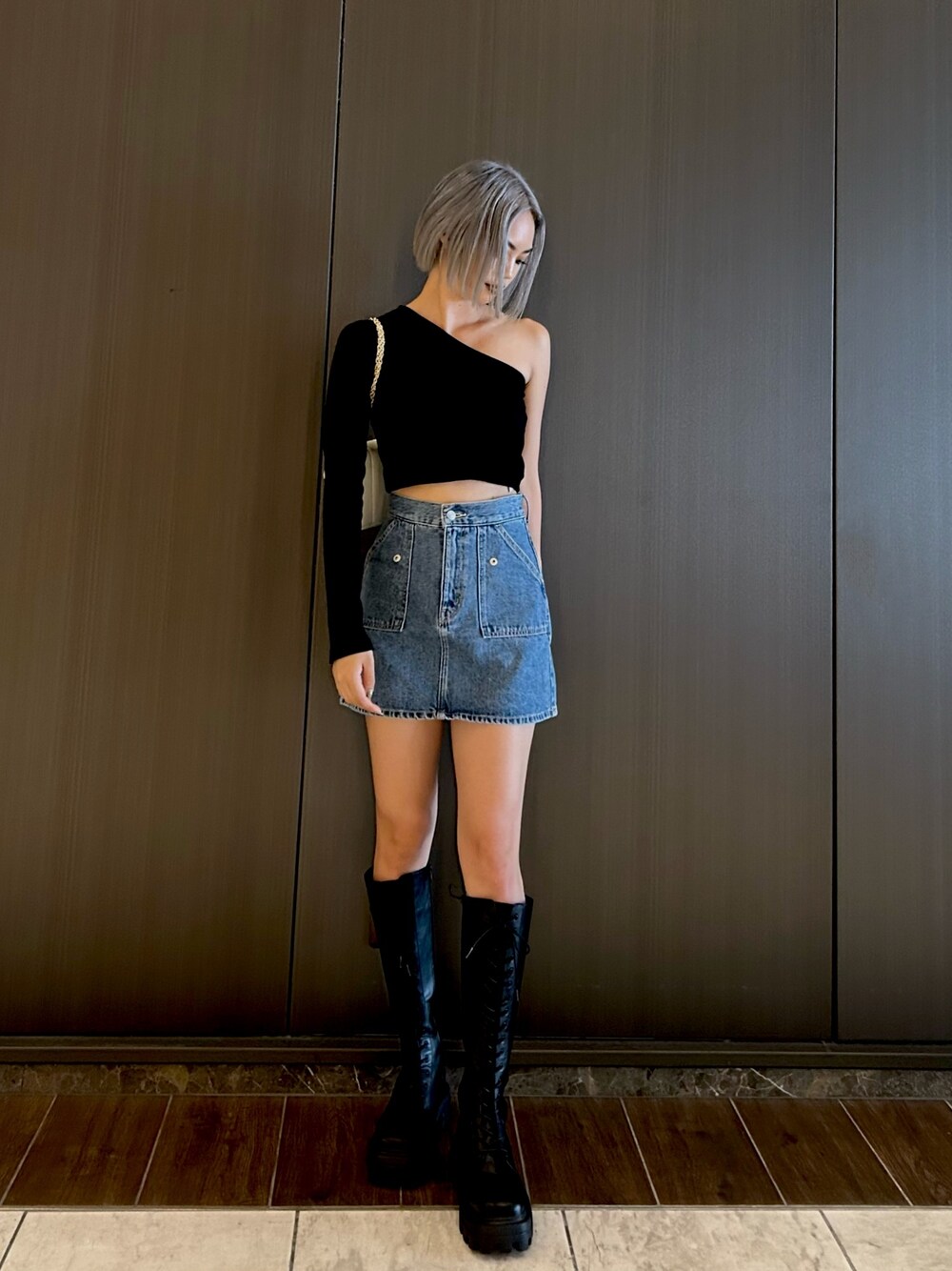 MINAMI(EVRIS)のデニムスカート「【10周年記念】ウエストデザインミニスカート」を使ったコーディネート