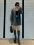 ジャケットはゆったりしたサイズ感です! 今回はセットアップのスカートと合わせましたが、デニムと合わせても可愛いです!スカートはミニ丈ですが、インナー付きなので安心して1枚で履いていただけます✨ ブーツは本当に履くだけで盛れます🤩24cmでLサイズでぴったりでした! アトモスとのコラボビーニーは小顔効果抜群です👍🏻👍🏻