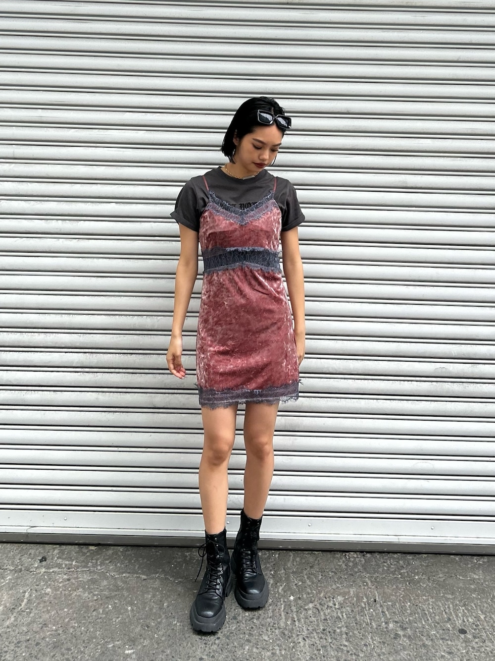 レースとベロアの組み合わせがかわいすぎワンピ🩷肌見せを減らしたい方はTシャツ合わせがおすすめです🫶🏻