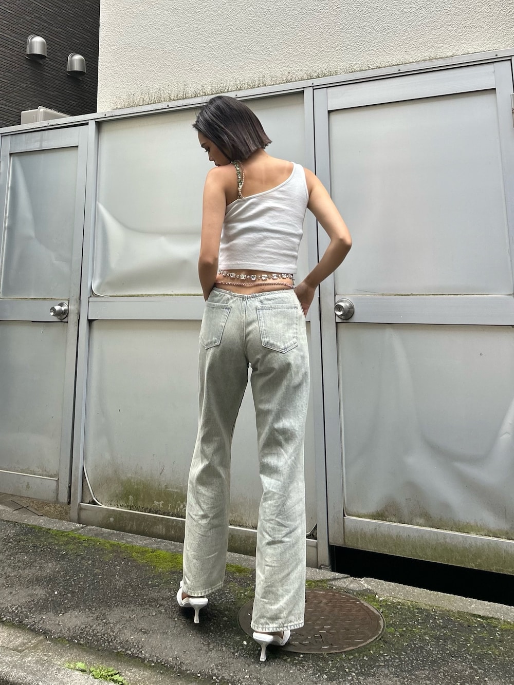 MINAMI(EVRIS)のデニムパンツ「ウエストビジューワイドデニムパンツ」を使ったコーディネート