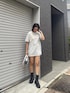 163cmでワンピ風に一枚で着れるサイズ感です! ブーツは普段24cmでLサイズ履いてます!