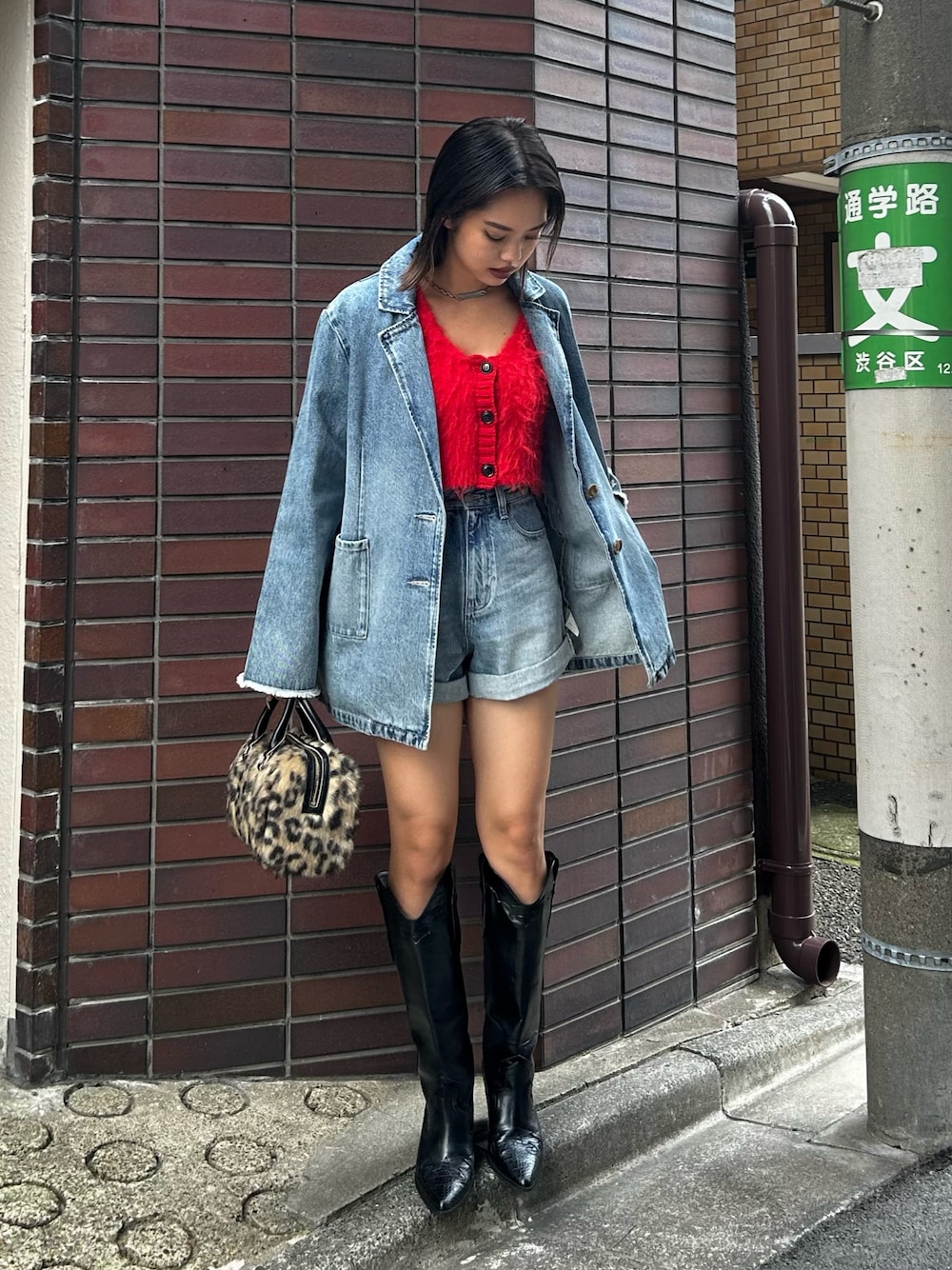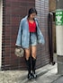 デニムジャケットは163cmでお尻隠れるサイズ感です!ボタン閉じてワンピ風に着てもかわいいです❤️ ショートパンツはSサイズ履いてます!形がきれいなので細見えします✨✨ バッグはマチがしっかりあって少し大きめのサイズなのでたくさん入ります👍