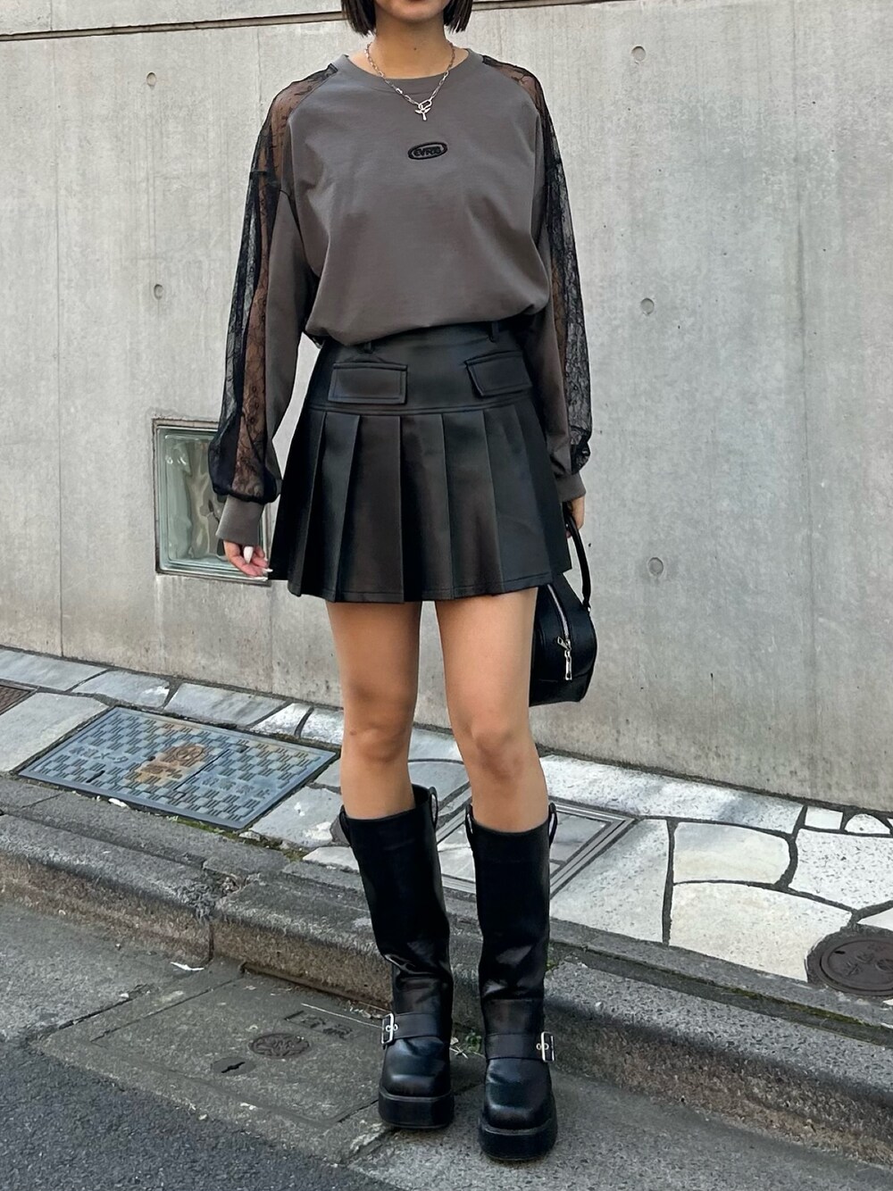 トレンドのレーストップス🎀インナーはチューブトップやキャミソールがおすすめです! スカートはインナーパンツ付きなので一枚でも安心して履いていただけます! ブーツは普段24cmでLサイズ履いてます!ヒールが太めで安定感があり歩きやすいです!! バッグはコンパクトなサイズですが、マチがあるのでしっかり物もはいります✨✨