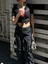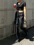 モノトーンコーデ🖤 トレンドのレーストップス✨インナーはEVRISのチューブトップと合わせてます! パンツは163cmでSサイズ履いてます!ローライズ今年っぽい♡ ミュールは普段24cmでLサイズ履いてます! バッグはマチがしっかりあり使いやすい形です🫶🏻