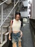MINAMI(EVRIS)のデニムパンツ「ハイダメージワイドデニムパンツ」を使ったコーディネート