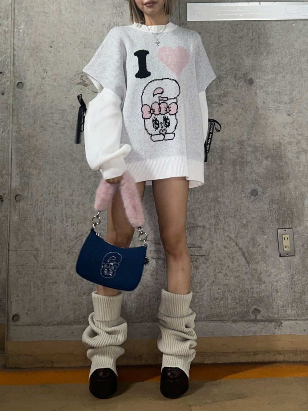 トップス→エスターバニーコラボのニットです🐰163cmでお尻がすっぽり隠れるサイズ感です! バッグ→ミニ財布やリップなどの小物が入るサイズです💘 シューズ→普段24cmでLサイズ履いてます!レッグウォーマーは足回りの調整ができる為、ルーズにもニーハイでも着用可能です!!