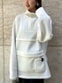 【tops】 ダンボールニット素材で弾力があります! メッシュの切り替えが入っていて単色でもシンプルになり過ぎません👍 38サイズ着用でヒップはすっぽりです。 【skirt】 MA-1素材がドッキングされたUN3D.らしいスカート。ウエストは全周ゴムなので着脱が楽チンです☺︎ 光沢感のある部分とスウェット生地のマット部分のメリハリがあるのでカジュアルになり過ぎません👏 【accessory】 タックを表現したピアス。 存在感はありますが、見た目より重くないので長時間着用にも◎