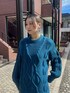 【dress】 ケーブル編みのニットとロングシャツがレイヤードされたワンピース。単品使いでも着回し力抜群👏長めのニットが体のラインを拾わないのに女性らしく綺麗に見せてくれます! 【accessory】 大きなサークルイヤリング。 丸いもモチーフが変形してるデザインになっています!動くたびに揺れるのがとても可愛い♡ピアス、イヤリングで展開があるので、どんな方にも着用していただけます😌