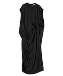【dress】 厚手のポンチ素材でもちもちと柔らかいのにピシッとキレイなオケージョンスタイルになるワンピース。 大きめのタックと左右のギャザーによって立体的になるシルエットがかわいい♡ 微光沢の生地なので動くと光の加減によって陰影がはっきりと出ます◎ 【shoes】 ワイドスクエアのミュールが登場。 ゴールドは彩度高めでコーデが一気に華やかになります✨オールブラックのワンピースでも足元にカラーを持ってくることで垢抜けに!ヒールは高さがありますが、太めヒールとクッションで長時間着用にもオススメ!