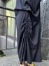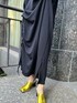 【dress】 厚手のポンチ素材でもちもちと柔らかいのにピシッとキレイなオケージョンスタイルになるワンピース。 大きめのタックと左右のギャザーによって立体的になるシルエットがかわいい♡ 微光沢の生地なので動くと光の加減によって陰影がはっきりと出ます◎ 【shoes】 ワイドスクエアのミュールが登場。 ゴールドは彩度高めでコーデが一気に華やかになります✨オールブラックのワンピースでも足元にカラーを持ってくることで垢抜けに!ヒールは高さがありますが、太めヒールとクッションで長時間着用にもオススメ!
