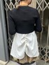 【tops】 ヘムギャザートップにショート丈はUN3D.の王道スタイル✨ 細見えショートトップは肩周りも華奢に見えるし、下にボリュームのあるトップスをレイヤードすることでメリハリのあるスタイルになります☺︎ 【bottom】 1枚着るだけでコーデが華やかになるスカート。サテンの光沢感とメッシュの異素材感がオシャレ見え間違いなし☝️ オケージョンスタイルにも使える万能スカートです!