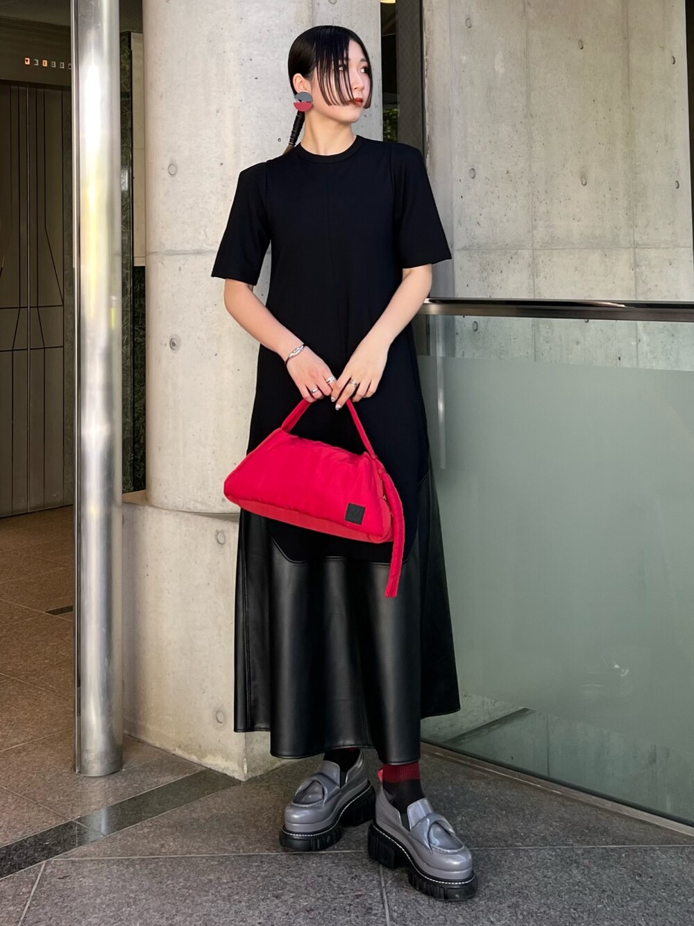 RINKA(UN3D.)のワンピース「FAKE LEATHER DOCKING OP / フェイクレザードッキングワンピース」を使ったコーディネート
