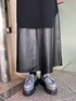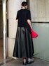 【dress】 フェイクレザーがドッキングされたワンピース。 単色の黒ワンピースでも異素材を取り入れてるのでシンプルすぎないデザインになっています! 上半身部分はストレッチの効いたポンチ生地で肌心地も良いです☺︎ 肩にツンと尖ったピンタックがあるので華奢見えするのも嬉しいポイント🙌🏻