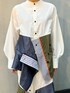 【set up】 un3d.で定番のシャツシリーズ。 今回は配色が特徴的な立体的なシャツです!ボタンの掛け違いによってさまざまなシルエットが楽しめるオシャレアイテム👔 ミックスカラーはナイロン生地がドッキングされているので異素材さもポイントです☺︎