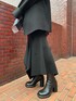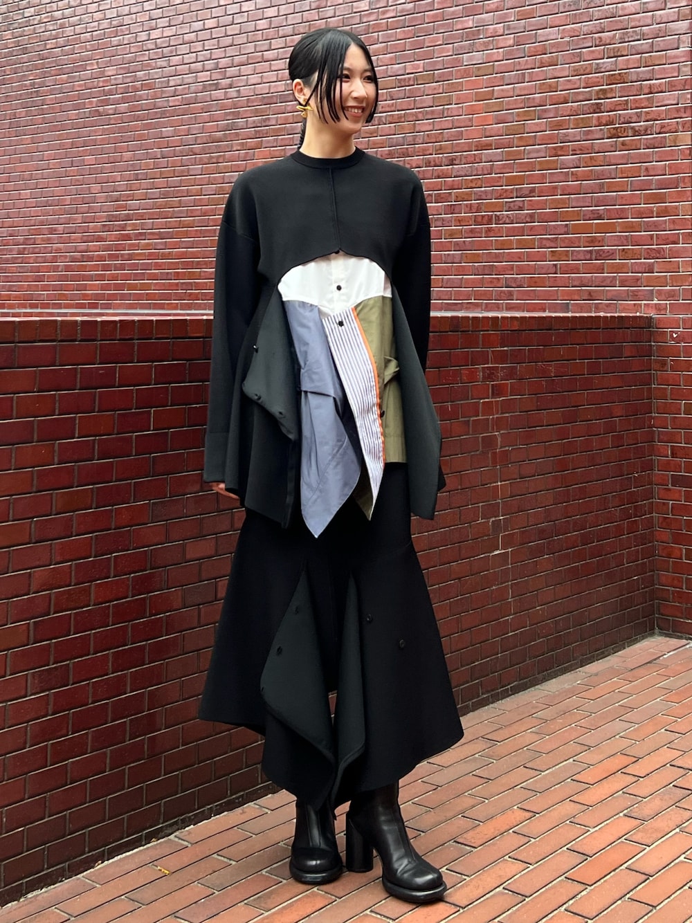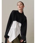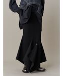 【tops】 ヒラヒラと動きのあるニットに配色が可愛いシャツをレイヤード。 ブラックの中にデザイン性のあるシャツが映えて一癖あるオシャレコーデに! ニットの袖は折り返しのようなデザインになっています。 【bottom】 トップと同素材のニットスカート。 ボタンの留め方次第でシルエットが変化する優れもの👏🏻 マーメイドシルエットなので上品な大人コーデにも使えます!着回し力も高く、お手元のアイテムに合わせやすいです✨