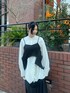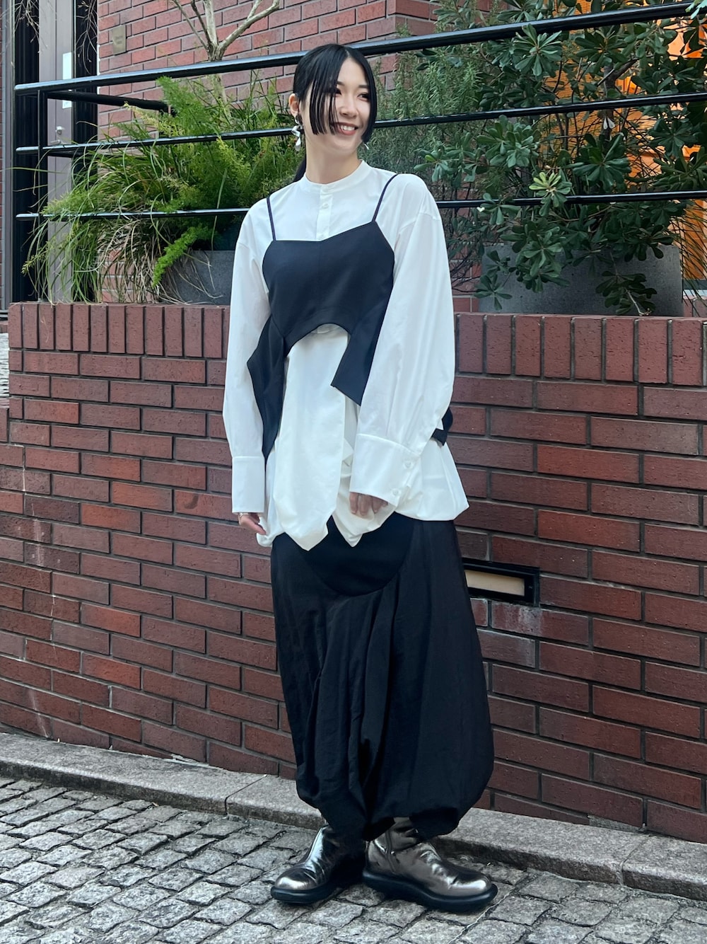 【set up】 柔らかいシャツ素材がドッキングされていて綺麗なバルーンシルエットになっています! あえて上下で違うカラーを合わせても可愛いですし、キャミソールをレイヤードすることで統一感が出ます◎