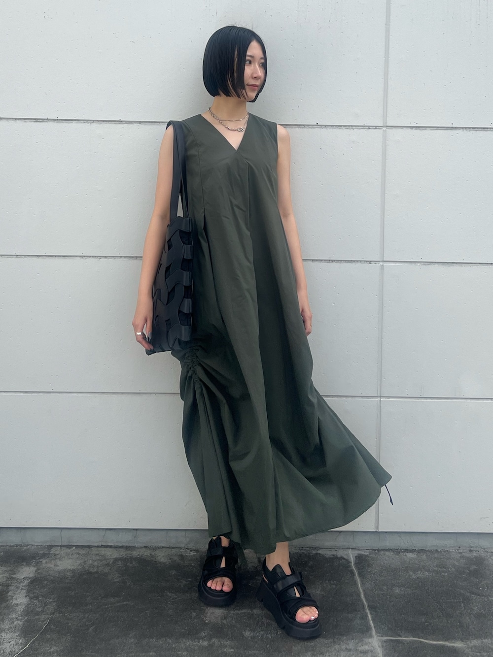 RINKA(UN3D.)のワンピース「TYPEWRITER GATHER OP / タイプライターギャザーワンピース」を使ったコーディネート