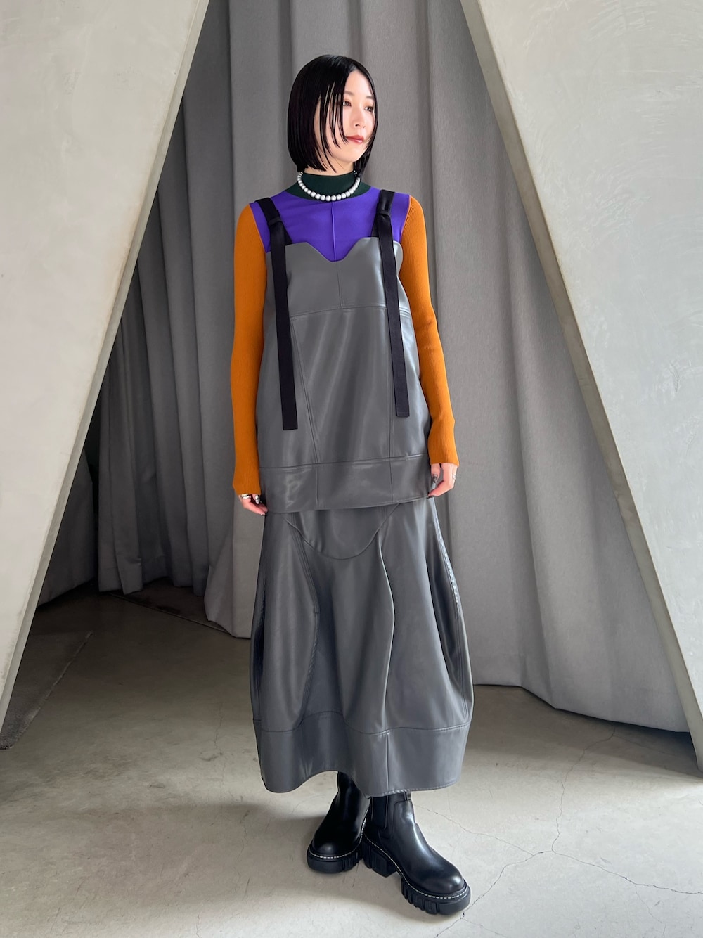 RINKA(UN3D.)のその他トップス「FAKE LEATHER COCOON LONG CAMI / フェイクレザーコクーンロングキャミ」を使ったコーディネート