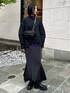 【tops】 袖と裾に中綿が入ったあったかシャツ。 フロントでギャザーを絞ってよりUN3D.らしいシルエットに! 一枚でもレイヤードしてカラー物を合わせても◎ テントに広がったシルエットなのでタイトなボトムスとの相性もいいです! 【bottom】 女性らしいマーメイドシルエットのニットスカート。 縦ラインが細見え効果があり、どんなトップスにも合わせやすいデザインです! 裾はペプラムが付いているので足捌きがよくストレスフリーに着用いただけます☺︎