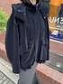 【outer】 ベルベット素材を使用したマットブラックなアウター。 光の当たり方で表情が出る生地なので不思議な印象に。後は長めなのでヒップがすっぽり隠れるサイズです! フードは取り外しが可能なのでスッキリモードに見せたい時は外したスタイリングもおすすめ!
