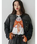 HIKARU(jouetie)のデニムジャケット「シングルジップデニムジャケット【セットアップ対応】」を使ったコーディネート