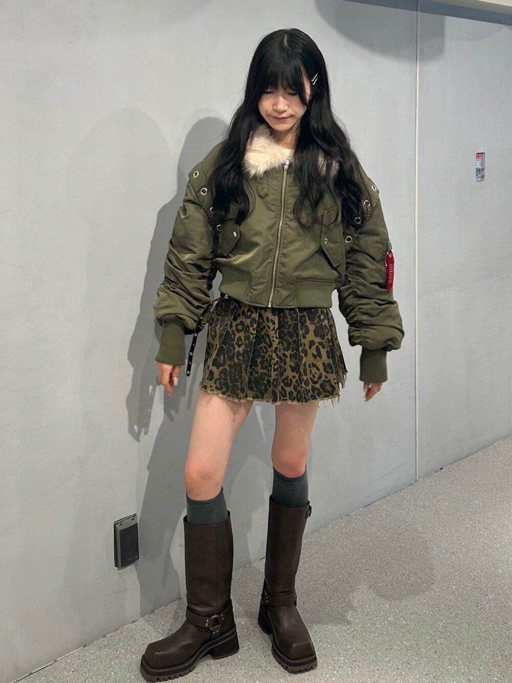 アウター 顔周りのファーが可愛い!小顔みえ♡ クロップド丈なので脚長効果も! 中に分厚いニット着ても着太りして見えません! ベストにもなる2wayタイプなので1枚あれば飽きずに冬まで着れます。 スカート レオパ柄が今年っぽい! プリーツ綺麗なので盛れます! デニム付きなので一緒にレイヤードしても別々でも○ ブーツ 24.5でエルサイズ着用。 歩きやすく疲れにくいです!