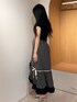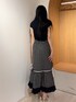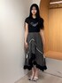 トップス タイトめなのでスタイル綺麗に見えます。 ロゴのワンポイントで黒でもシンプル過ぎずに○ スカート アシメのラインがカワイイー! 1枚でデザインせいあるので夏のシンプルコーデにプラスするだけで今年っぽく○ ミュール 24.5でMサイズ着用 スクエアなので歩きやすいです。