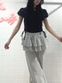 トップス 生地感しっかりしてるので秋の時期の半袖にもぴったり! 胸元も緩くないので落ちてこないです! パンツ 163センチでこの丈間です。 裾に絞りあるのでどの身長の方でも綺麗に着れます! ミュール 24.5でエルサイズ着用。 軽いので歩きやすいです!