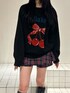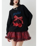ニット 一枚で主役級のさくらんぼ🍒 ゆるっとしたシルエットなので着心地も良いです! スカート クリスマスにもぴったりな赤チェック! トレンド感あるプリーツスカートの形でオシャレ見え◎ ブーツ 24.5でエルサイズ着用。 軽いので歩きやすいです!
